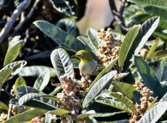ビワの蜜を吸うメジロ