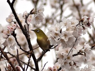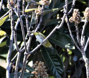 メジロは留鳥または漂鳥で、1年中蟹江周辺で見かける可能性がありますが、春先のビワやツバキの花、そして春のサクラの花の吸蜜に来る姿はたびたび見かけますが、他の季節には余り見かけません。
