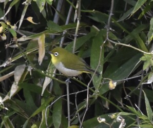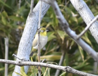 雑木林の枝にとまるメジロ