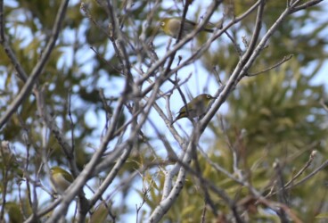 竹林周辺を飛び交うメジロ