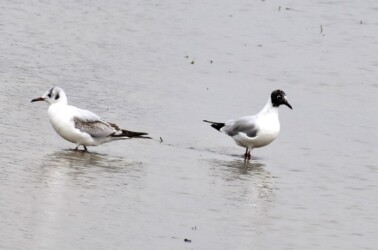 夏羽の頭部はともに黒くなりますが、ユリカモメではそれを確認していますが、ズグロカモメは確認していません。
