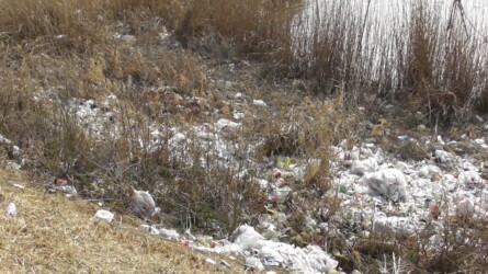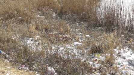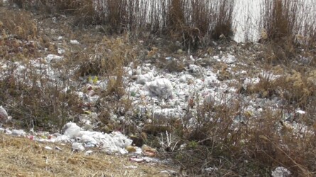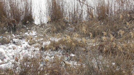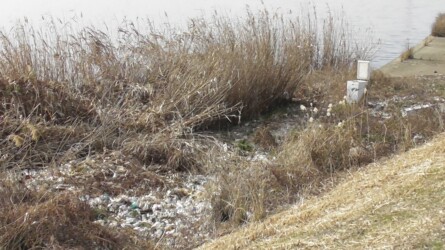 上流の護岸に沿ったヨシ原付近にもゴミが捨ててあります。