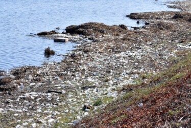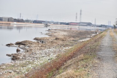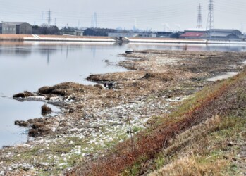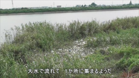 日光川はその上流の日光大橋付近のヨシ原でもたくさん散乱しています。