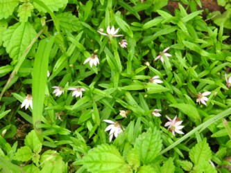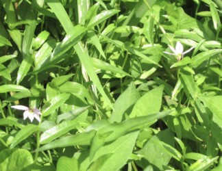 イチゴやカキドオシのように茎を伸ばし、その節から根を出して広がっていくようで、イボクサと同じ増え方をしています。