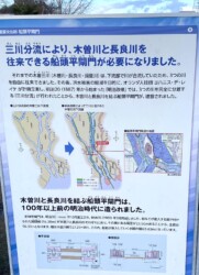 明治期になって三川を分流した結果、木曽川と長良川の行き来できるようにしたのがパナマ運河と同じような閘門なのです。