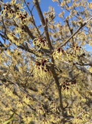 昨年見かけたマンサクは橙色が強く、豪勢な感じがするものでした。