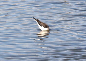 なぜここに留まっているのか疑問に思っていますが、採餌中に餌らしいものを嘴に咥えているので、餌が豊富なのではないかと思われます。
