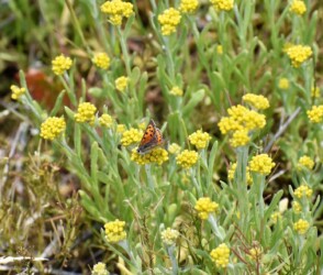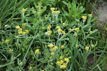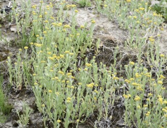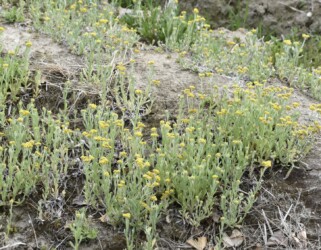 ウィキペディアには、ハハコグサについて「キク科ハハコグサ属の多年草である。道端や畑などに見られる小型の草で、全体が白い綿毛に包まれていて白っぽく見え、葉は細いへら形で、春から初夏にかけて細かい花を密に咲かせる。~中略~ 中国からインドシナ、マレーシア、インドにまで分布する。日本では全国的に見られるが、古代中国または、朝鮮半島から帰化したと言われる。日当たりの良い荒れ地、人里の道端や畑、田んぼなどに普通に見られる。~中略~ 根出葉は花のころにはほぼなくなり、葉と茎には白い綿毛が密生している。ハハコグサ全体を包んでいる軟毛は、害虫に食べられるのを防ぐためのものであると考えられている。花期の春から初夏にかけて(4~6月ころ)、茎の先端に頭状花序の黄色い花を密に集まって多数咲かせる。頭花は、中心が両性花、周辺部は雌性花で球状につく。花径は総苞で約3ミリメートル(㎜)である。花が終わると、同科のタンポポのように、実は綿毛をつけて、風に乗って種子を飛ばす。」と記されています。