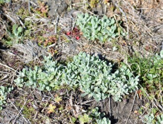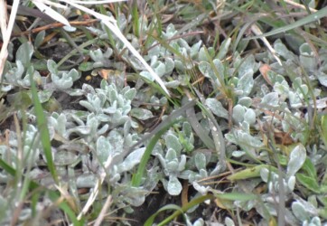 2月から3月にかけて田んぼの畔には、白っぽい感じの葉の植物が生えています。