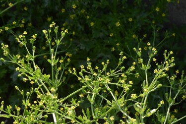 黄色い花が咲き、キンポウゲ科特有の(オダマキなども同じ)で切り込みがある葉が特徴です。
