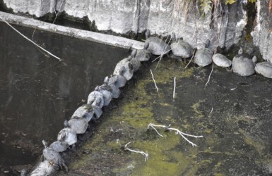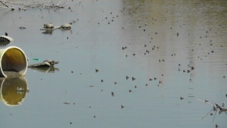 アカミミガメは環境が悪くても繁殖しているのを見かけるので、その繁殖力ばかりでなく環境汚染にも関わっている可能性があります。