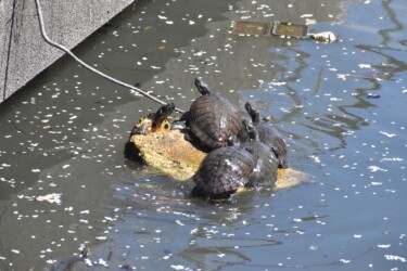 住んでいる団地内を流れる用水路にもカメを見かけますが、全てアカミミガメです。