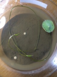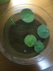以前天童の原崎沼で採った種の底を紙やすりで開けて、それで発芽させてみていました。