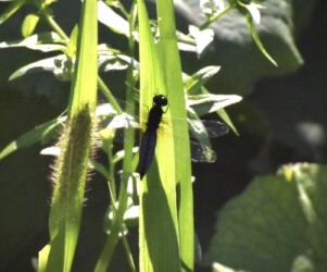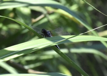 他のトンボたちも陽射しが強い時には暑さを避ける行動をとりますが、ハラビロトンボは葉の裏にとまって暑さを避けていました。