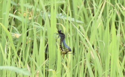 一度だけ交尾態になり、水辺で産卵しているのを見かけました。