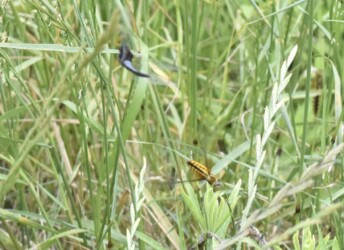 シオカラトンボの生息地は広範囲にわたるのに、ハラビロトンボのそれは生息地域が限定されていて、水辺に近い叢に多いように感じています。
