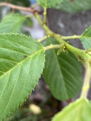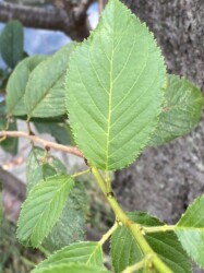 夏になると他の木の仲間の葉も繁っていて、どの木の仲間かなかなか分からないのですが、バカの一つ覚えで「葉の葉柄に蜜腺があればサクラのなかま」という規則性にすがって、区別しています。