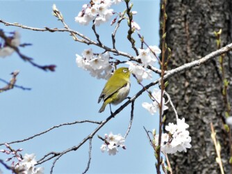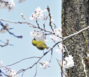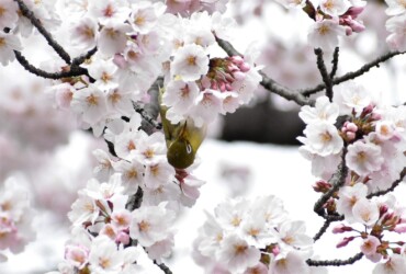 サクラの蜜を吸うメジロ