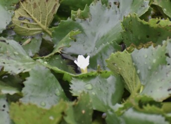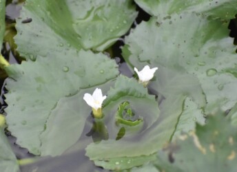 というのは、水辺に生えるミズオオバコ、オモダカ、オオカナダモ(アナカリス)などはみな珍しい花弁が3枚なので、同じように白い花が咲くからには同じ3枚だと思い込んでいたのです。