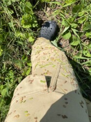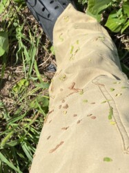 ズボンにひっついたアレチヌスビトハギ