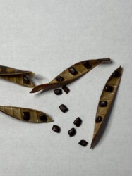 そこでその数株を土と共に掘って、自宅のプラスチックのプランターで育てて、莢から何十粒かの種を採ることができました。