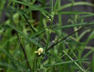 クサネムは典型的な蝶形花なのですが、カワラケツメイは普通の5枚の花弁の黄色い花を咲かせます。