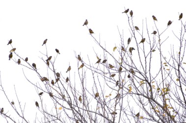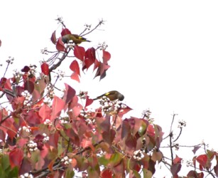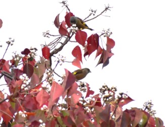 数日前に永和の沼で、カワラヒワの群れがナンキンハゼの木に群がって、その白い実を啄んでいるのを見かけました。