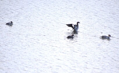 これまでの数年間の観察から、ミコアイサは12月の下旬に来て、2月の下旬か3月初旬にはいなくなるので、遅く来て早く故郷(繁殖地)に帰ってしまう仲間だと考えていました。
