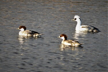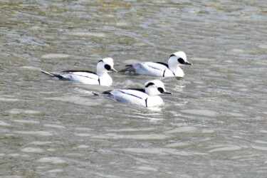 ミコアイサの狩りの習性はカワウなどと同様に、何羽で同じ方向に泳ぎながら、潜って魚を捕ります。