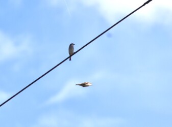 近くにムクドリもとまっていて、呉越同舟の風情でした。