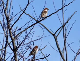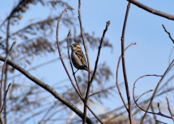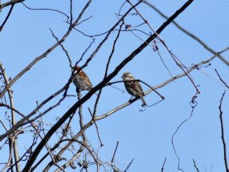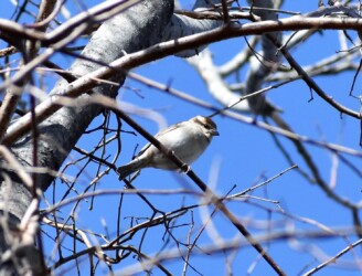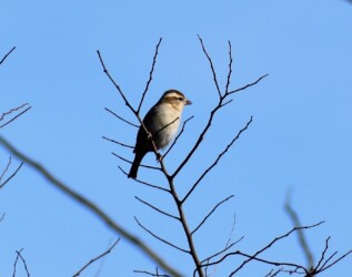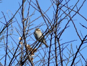 1月末頃に葉が落ちた雑木の木々に止まっているのを見かけています。