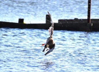 ネットにかかったカモ(未同定)