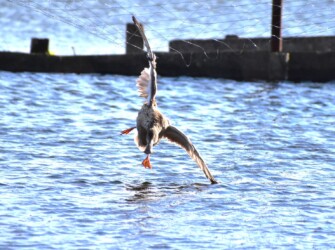 見たときは脚が橙色だったので、カルガモかと思ったのですが、どうも様子が違います。