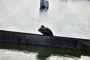 数日前に、三福の養殖池のネットにカモの羽がひっかかってぶら下がっていました。