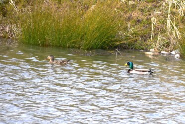 前に離れていったマガモたちには、成熟していないマガモが混じっていると思われますが、ここに残っているマガモのオスとメスは成熟した番いのようです。