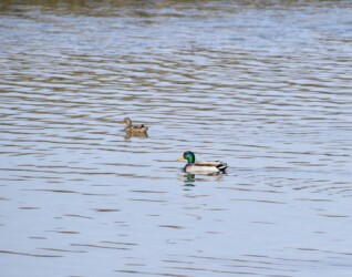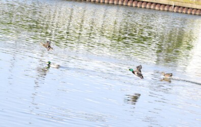 善太川のマガモのカップルは、他のカップルと群れたり、横を通ったりしているものの、基本的にはオスとメスの二羽が基本になっているようです。
