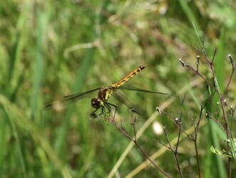 まだムギワラ色でしたが、写真を撮って胸の黒条を確認すると、アキアカネの特徴がありました。