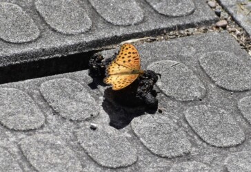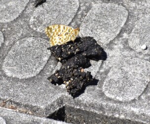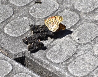 天童で見かけた獣糞の汁を吸うツマグロヒョウモン