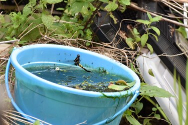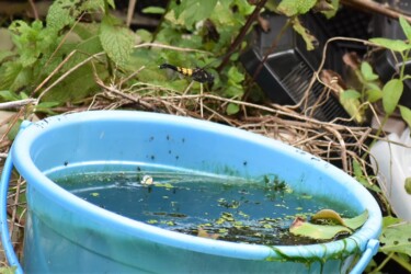 そこに5~6年程前にオオシオカラトンボのメスが飛んで来て、そのプランターやバケツに産卵していきました。