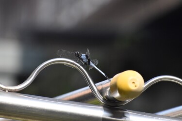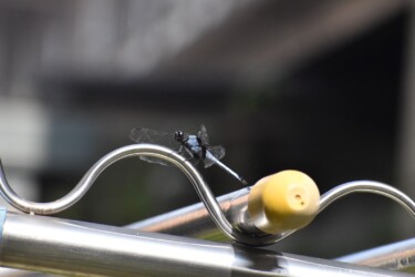 今、この文章を書いている部屋から、このオオシオカラトンボが茎の先や、物干し台のアルミの竿にとまっているのが見えます。