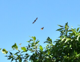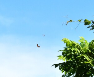 ある時はカナブンかコガネムシらしいコウチュウが飛んで来たら、この時も飛び立って追いかけていました。