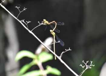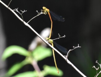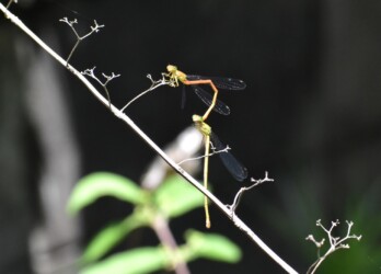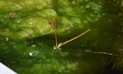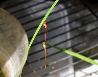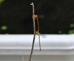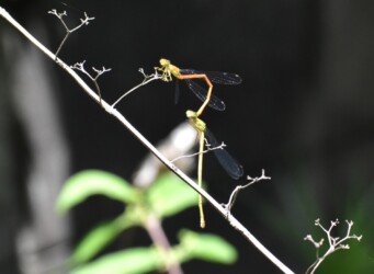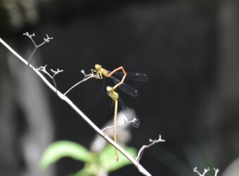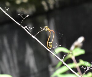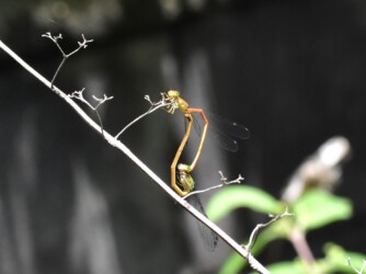 ところがこのベニイトトンボのメスは、そうした行動をとることをしないで単にぶら下がっているだけでした。