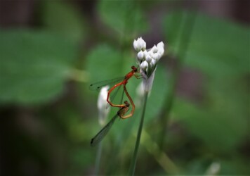 ベニイトトンボが交尾態になるのも大変のようだ