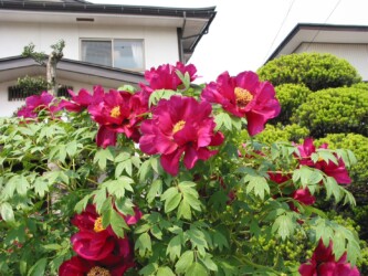天童では民家の庭にシャクヤクやボタンを植えているところがあります。