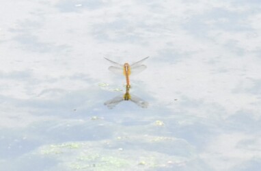 ショウジョウトンボのメスの産卵行動