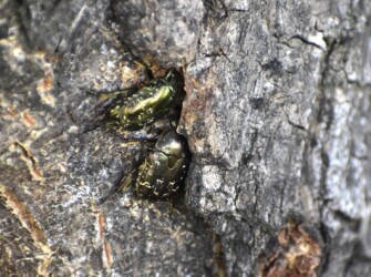 幹の表皮が剥がれそうなところを剥がしてみたら、そこからカナブン、コクワガタ、ゴキブリが出てきました。