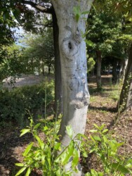 そんなことを繰り返しながら、日光川ウォーターパークでタブノキではないかと思われる木を見かけました。
