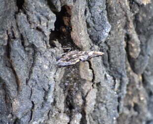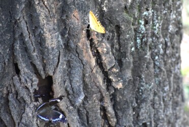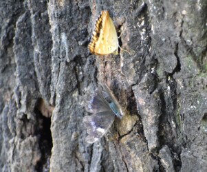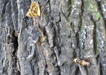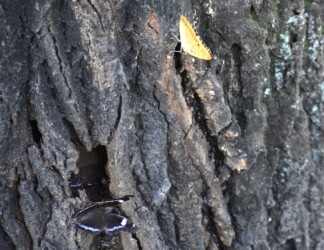 昨日もこのクヌギの幹にやってくると、コムラサキとルリタテハがとまって、吸汁していました。