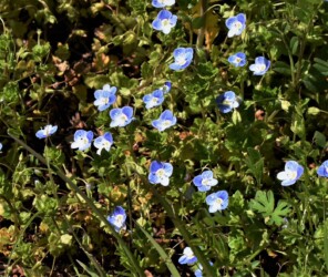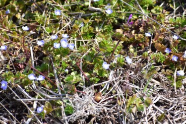 オオイヌノフグリは、越年草なので秋から冬にかけて畔の南斜面などで見かける植物です。