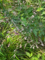 先日海津市森下の古い神社脇の叢に、小さいマメ科の蝶花をたくさんつけているハギの仲間を見かけました。